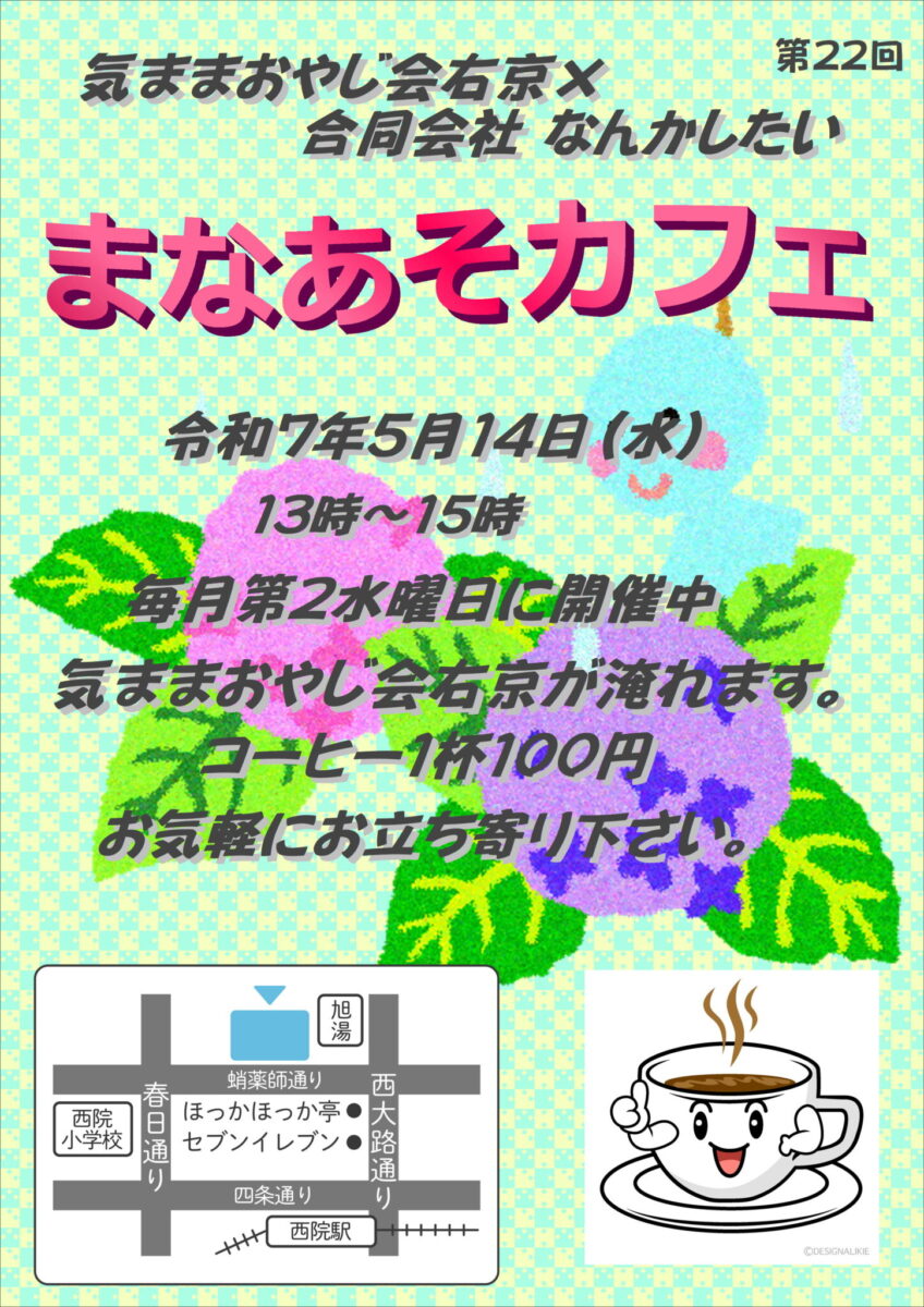 ちょっと一服しませんか! 街角のカフェで「気ままおやじ会右京」のおやじが淹れる美味しい珈琲(紅茶)を!