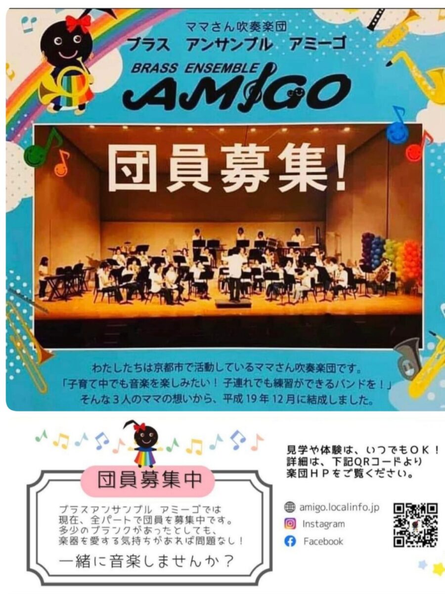 ブラスアンサンブルアミーゴは、京都市で活動しているママさん吹奏楽団です。
