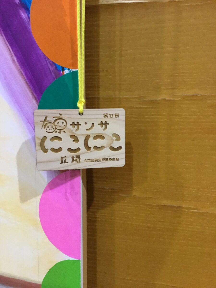 撮影後、右京ファンクラブから応援していただき、京都府立北桑田高校に制作していただいた「サンサにこにこ広場」のロゴ入り木札=木製フォトフレームをプレゼント。撮影した写真を貼っていただくのも良し、お名前を書いて名札にしていただくも良し、木のぬくもりあるフォトフレームに保護者の皆様はにっこり。喜んでいただきました。