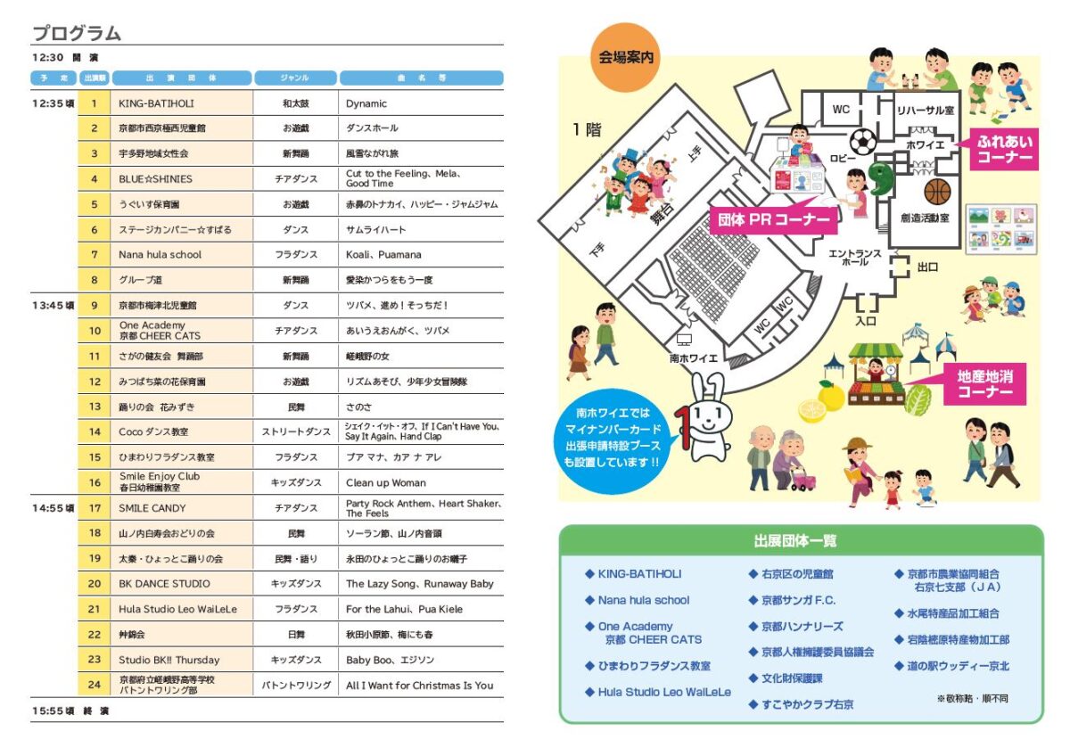 ホール内では一般公募による団体のほか、右京区内の学校や幼稚園・保育園などを含めた、24の団体がステージ発表を行いました。