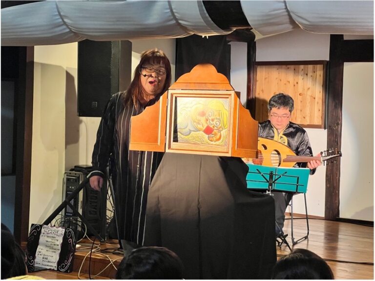 それだけでなく、イベントでは日本の文化「紙芝居」をつかって「アラジンと魔法のランプ」を子供たちに披露。朗読のプロの茶子さんが情感たっぷりに読み聞かせました。