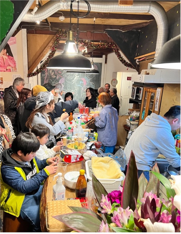 「もともと、サンサ右京の体育館を使って、子どもや大人でアラブにルーツを持つベリーダンスのレッスンをしていたんです。そんな時、太秦で大人も子どもも集って楽しめるこの「古心庵」に出会い、古心庵で交流会やクリスマスパーティーをするようになりました。そうしていたら、マスターの徳丸國廣さんから、「古心庵が主催するハロウィンパーティーにも出ない?」とお誘いいただいて、地域の方々にダンスを見ていただく機会が生まれたんです。今日出演したYATCHさんからも以前からアラブの音楽を教わっていて、今回YATCHさんが京都に来るタイミングで、アラブのことを伝えるイベントをしたいな、と思って企画しました。ベリーダンスを習ってくれているみなさんにも、そのバックグラウンドであるアラブのことを知ってほしいな、という思いもありましたね」。