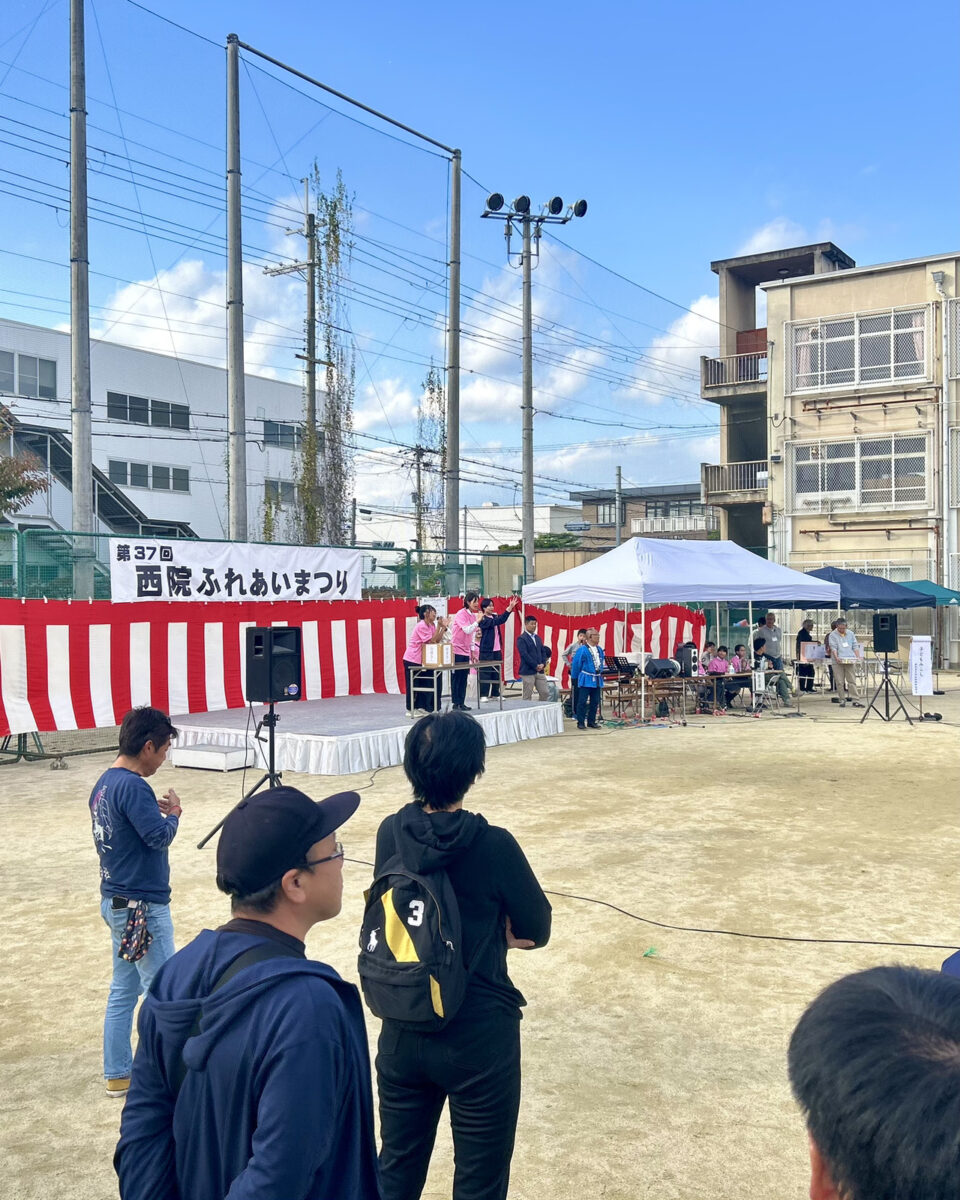 太鼓やコーラスのパフォーマンスをはじめ、西院小学校児童によるソーラン節、西院中学校吹奏楽部による演奏や西院春日神社若中会の子ども神輿など、地域のみんなが活躍でき、誰でも楽しめる素晴らしい場でした。