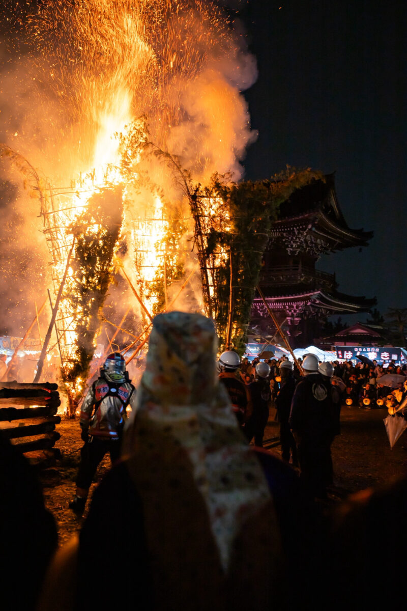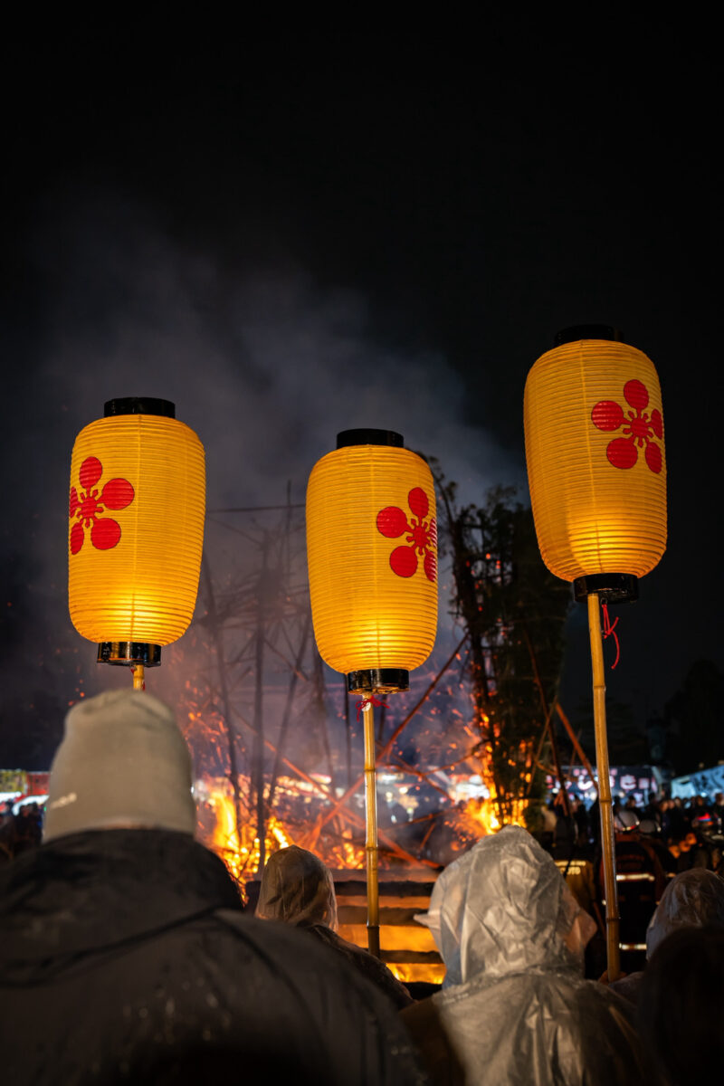 高さがある3本の松明が激しく燃え上がる姿は一見の価値ありです!