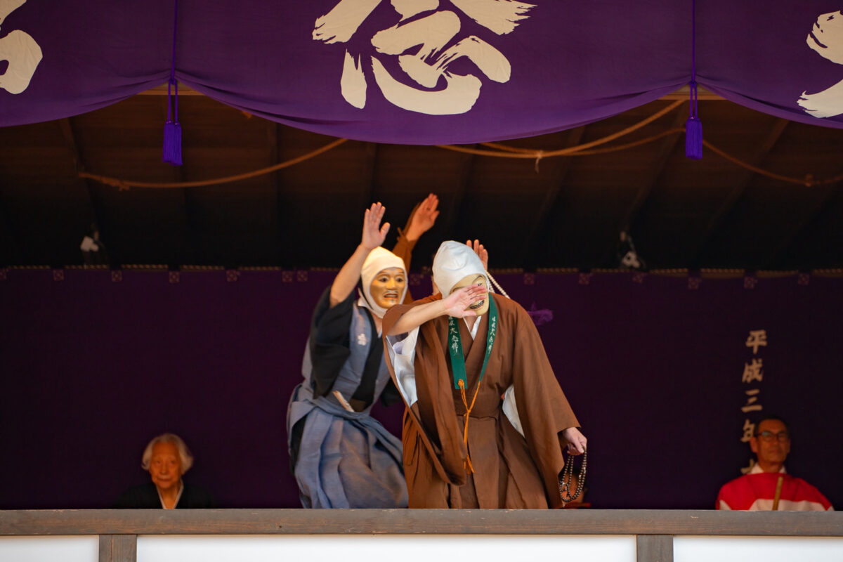 高さ7メートルの3本の松明を早稲・中稲・晩稲に見立て、火勢の強弱でその年の農作物の豊凶を占います。