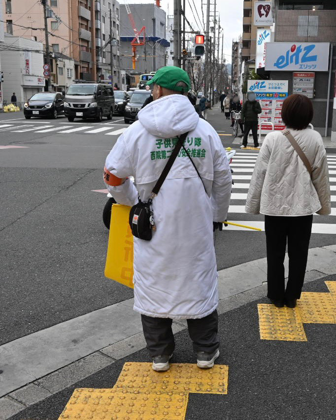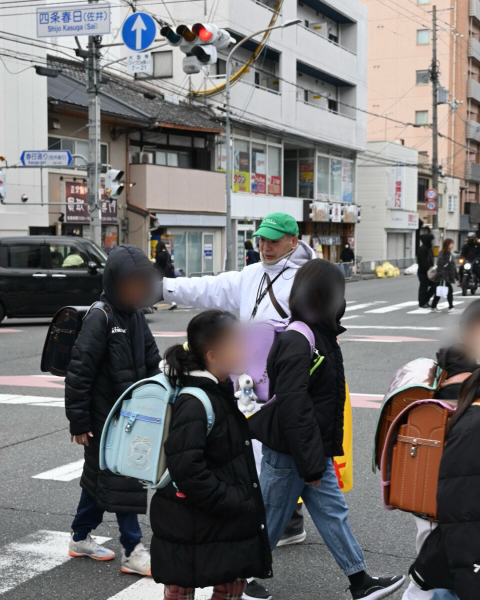 毎朝、子どもたちに明るく声をかけるのは、西院第二学区で見守り活動を続けて14年になる野口信義さんです。今年で78歳。