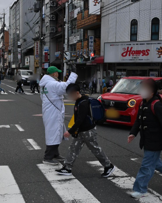 見守るのは小中学生だけではありません。高校生や大学生、子どもの送り迎えをする保護者、通勤途中の人たちにも目を配ります。