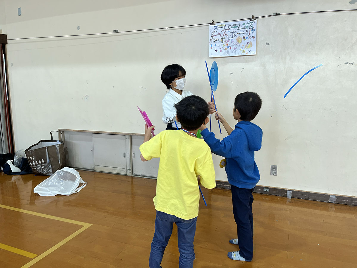 うめづ五輪でたくさんの子どもに体験してもらえました。誰かが始めると他の子も同じ種類の用具を使いたくなるようです。以前は用具が限られていたので、そこで待機が発生していたのですが、今回それぞれの種類で数を用意できたので、一度に10人とかでも待つことなく体験できていたので、とても助かりました。