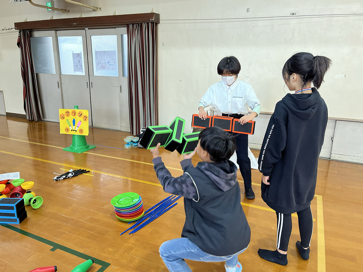 地域行事に参加する中高生が少ないという課題解決のために、ジャグリングを通して小学生だけでなく中高生以降も教え合うなど継続的に関わる環境づくりとして、梅津児童館を拠点に取り組まれています。